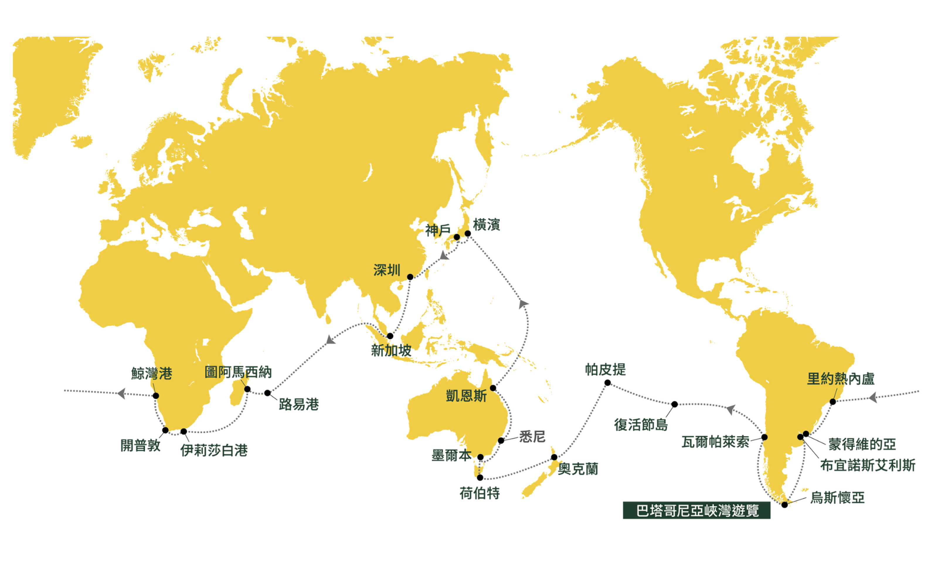 為你介紹「地球⼀周の船旅」的精彩航線及獨特的船上⽣活。